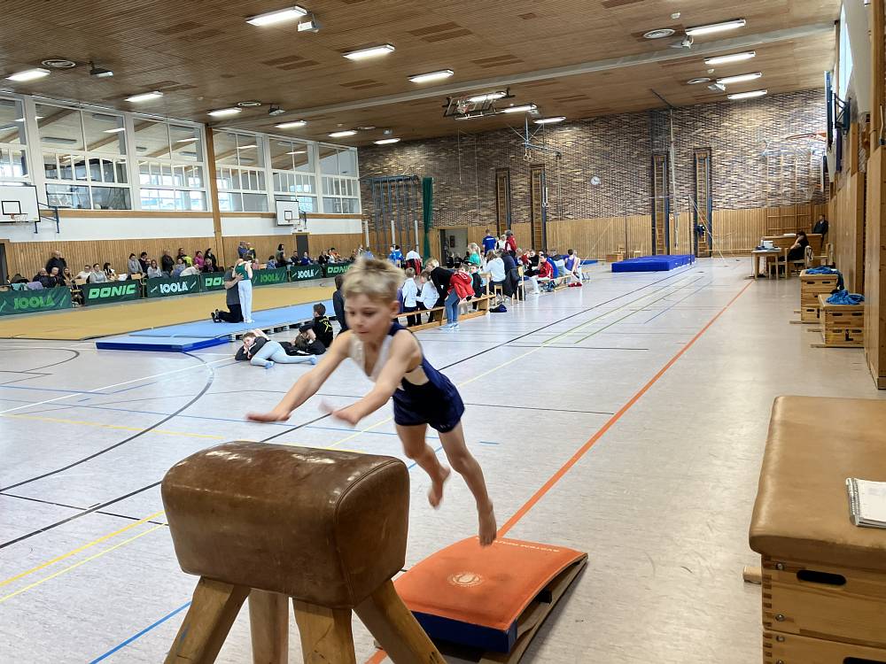 Sie zeigten den vielen Zuschauern Übungen wie Aufschwung und Umschwung am Reck, Rolle und Winkelstütz am Barren, Radwende und Handstand am Boden, Handstand Überschlag am Sprung die nach Schwierigkeit, Ausführung und Haltung bewertet und mit Punkten belohnt wurden.